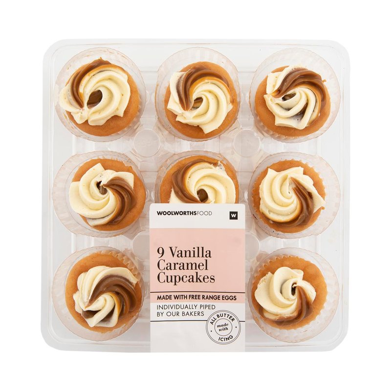 Our moist vanilla sponge cupcakes are a match made in heaven, topped with a caramel and all butter vanilla flavoured icing swirl of sweet joy.